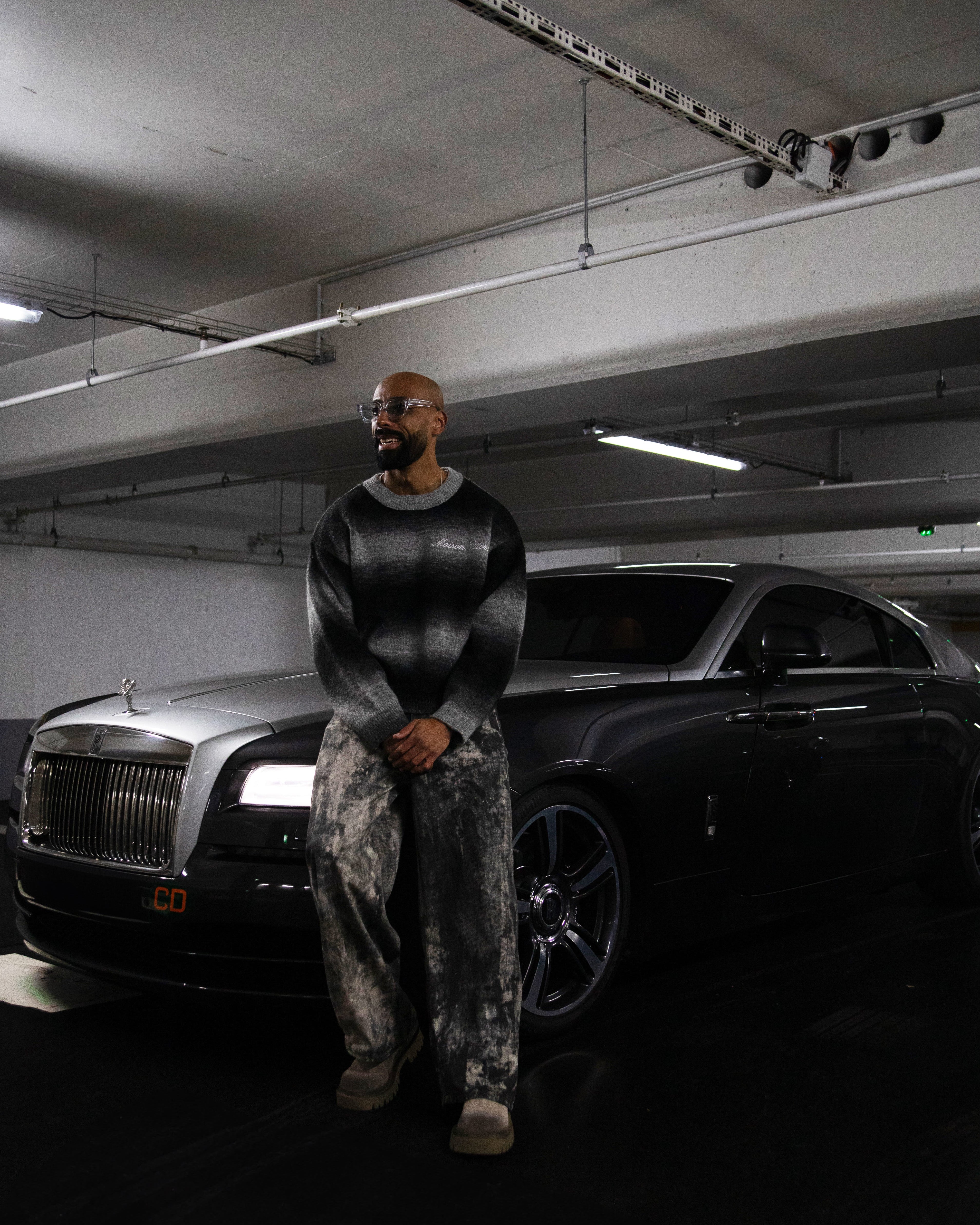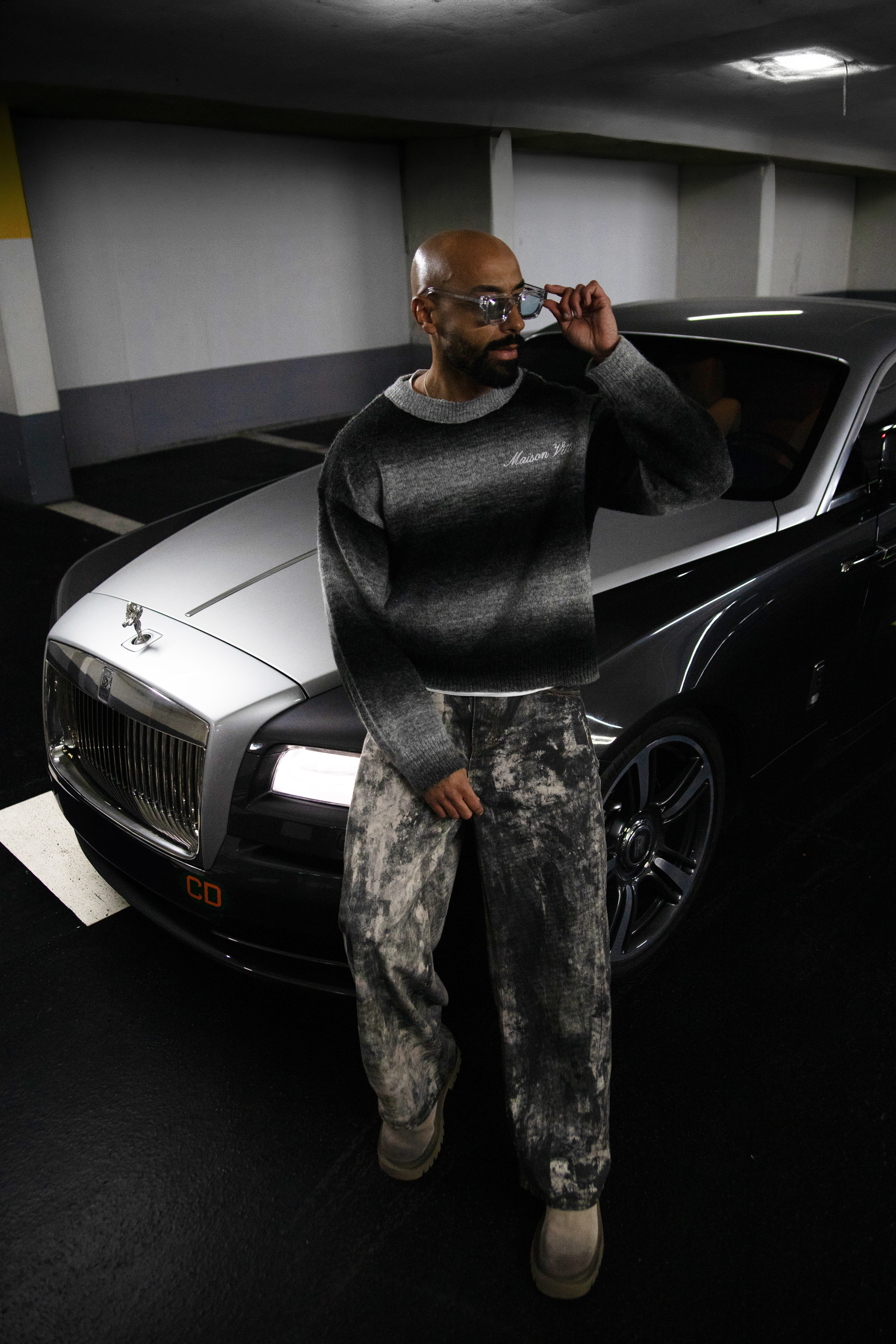 Chaque pièce de cette capsule, reflète un savoir-faire unique de la création des coupes sur mesure aux finitions haut de gamme et jusqu'à la diversité des tissus avec ce jeu subtil de contrastes, comme notre pull dégradé gris et noir. À l’image des voiture de la marque, nous avons travaillé des designs uniques alliant modernité et intemporalité. Cette collection incarne le luxe, l'exclusivité et l'excellence, offrant une expérience vestimentaire inspirée des codes emblématiques de l’automobile tout en portant ces pièces avec un look raffiné ou décontracté.
